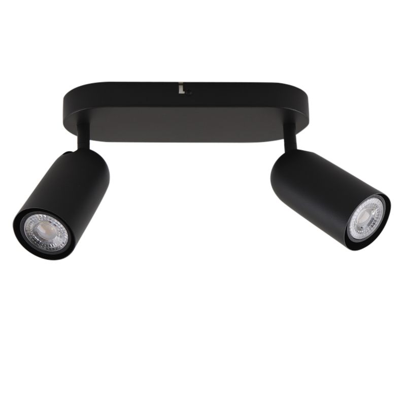 De moderne plafondspot Jacey is zwart van kleur en gemaakt van aluminium. De zwarte plafondspot wordt geleverd exclusief bijpassende lichtbronnen. In deze lamp moeten 2 lichtbronnen met GU10 fittingen. Het maximale wattage van de lichtbronnen mag niet hoger zijn dan 50 watt.
