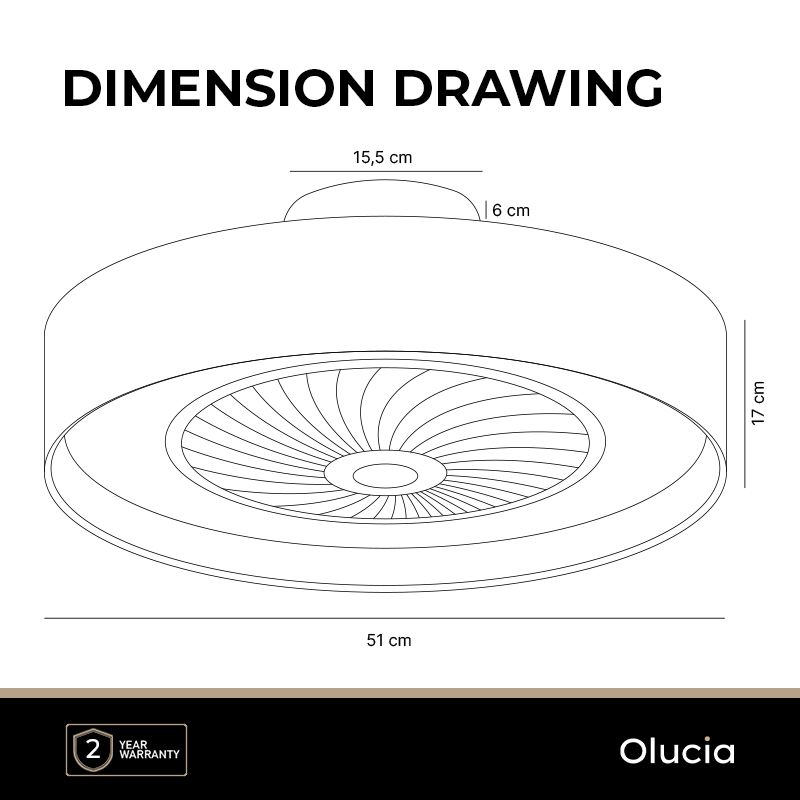189,-4-8 werkdagen Moderne plafondventilator zwart, Hale, 40W, 3000K LED, met afstandsbediening- D: 50 cm, H: 22 cm