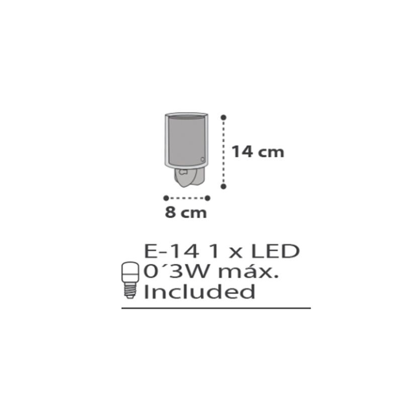 Product informatie Maximale wattage 1 Aansluitspanning 220-240V Aantal lampjes 1 Aantal lumen 15 Product informatie Lichtkleur 3000K (warm wit) Type fitting E14 Type lichtbron bijgevoegd LED verwisselbaar Verwachte aantal branduren 15000 Incl. lampje Ja Breedte in cm 12 Diameter in cm 12 Gewicht in kg 0.104 Hoogte in cm 14 Lengte in cm 8 Dimbaar Nee Garantie 2 jaar IP waarde IP20 (stofdicht) Kleur Roze Materiaal Kunststof Ruimte Babykamer, Kinderkamer Stijl Basis Artikelnummer Q19698 - Home