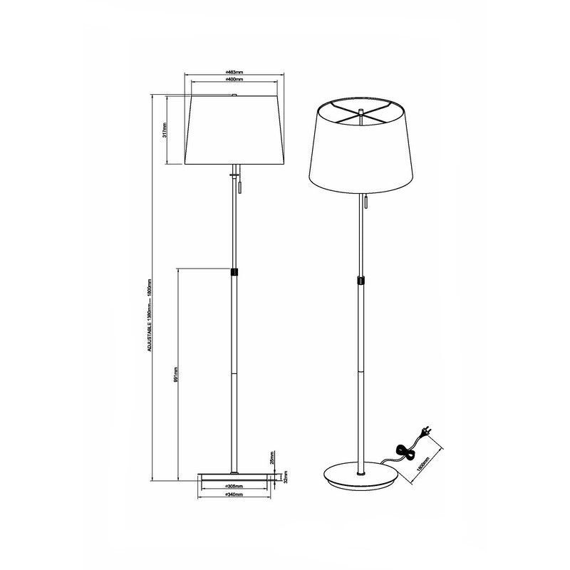 Deze nikkelen vloerlamp klassiek, Niva, heeft de volgende kenmerken:
