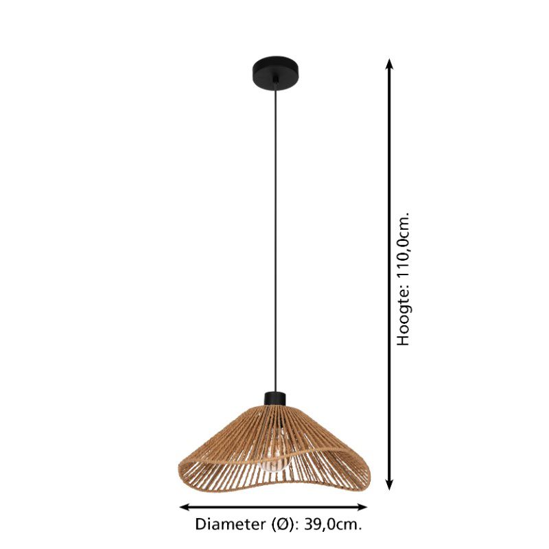 De papieren hanglamp Jitze heeft de kleur bruin en een landelijk design. Deze landelijke hanglamp wordt zonder bijpassende lichtbron geleverd. De fitting van de lamp is een E27 fitting en het maximale vermogen van de lichtbron mag niet hoger zijn dan 60 watt.