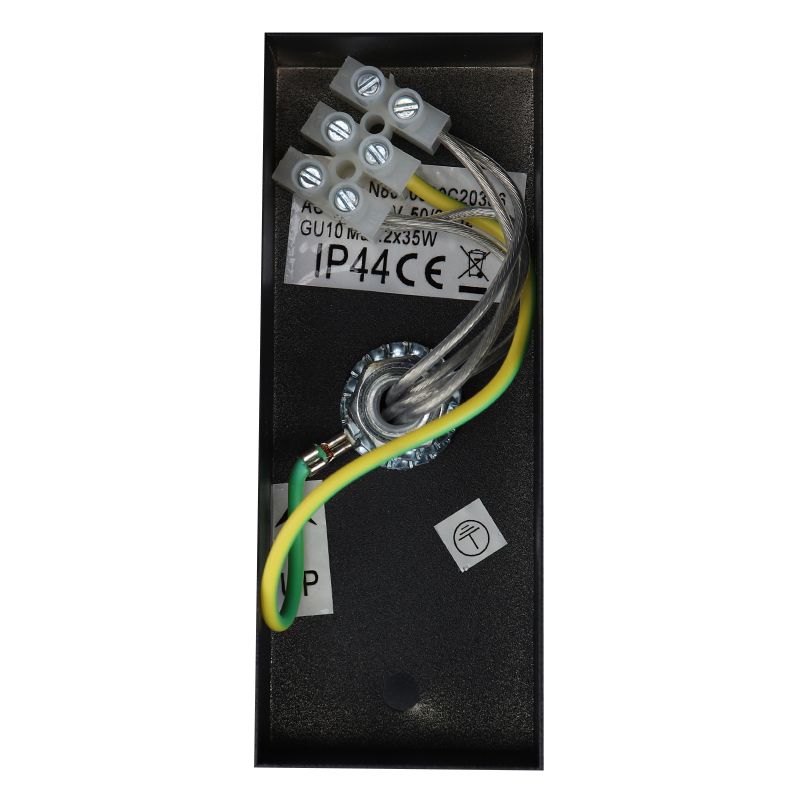 Deze buitenlamp wordt zonder de benodigde lichtbronnen geleverd. De lamp is geschikt voor LED lichtbronnen met een GU10 fitting. Het maximale wattage per lichtbron is 35. Klik hier voor het kiezen van de juiste lichtbron.