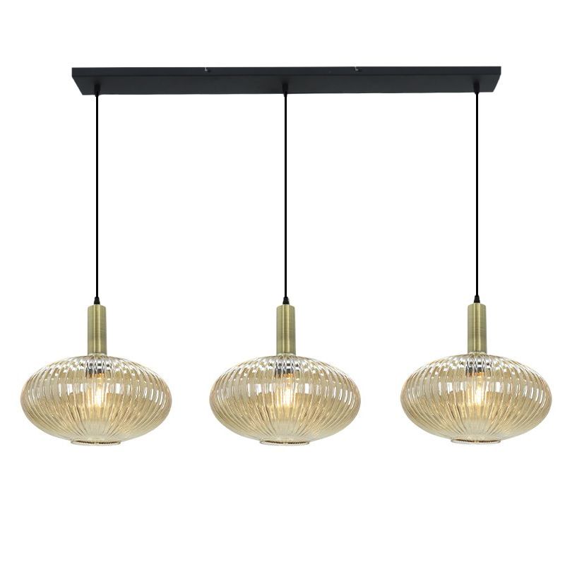 Ronde design hanglamp Lazaro met 3 amberkleurige kappen- D: 30 cm, H: 130 cm