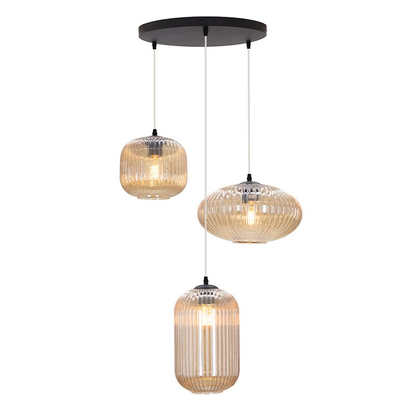Ronde design hanglamp Lazaro met 3 amberkleurige kappen- D: 30 cm, H: 130 cm