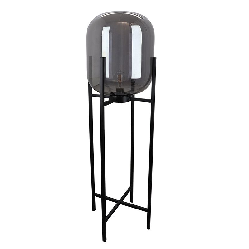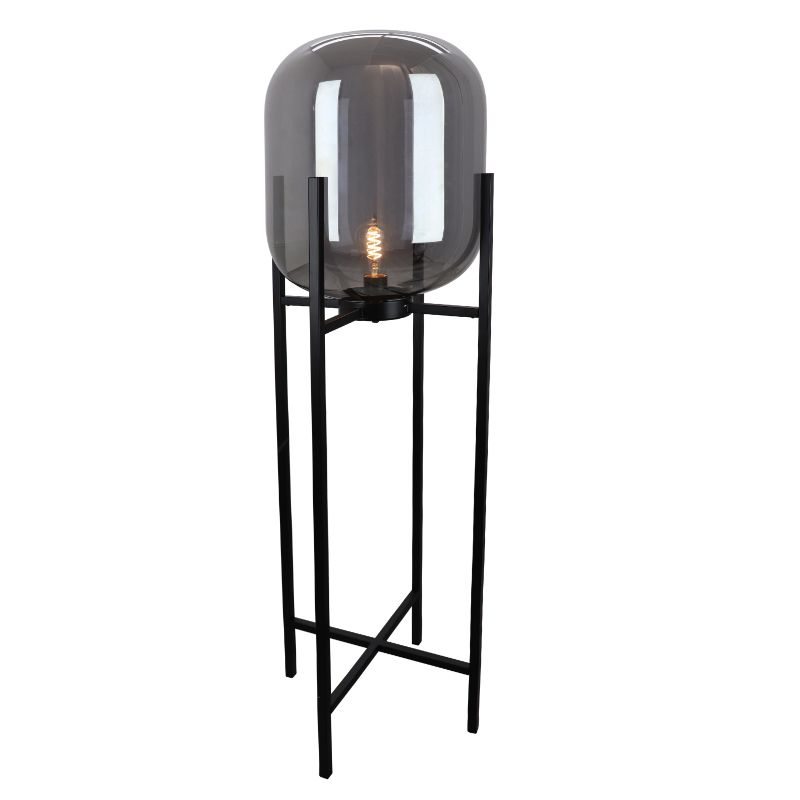 De retro vloerlamp Roxy is grijs van kleur en gemaakt van glas. De grijze vloerlamp wordt geleverd exclusief bijpassende lichtbron. In deze lamp moet een lichtbron met E27 fitting en het maximale wattage van de lichtbron mag niet hoger zijn dan 7 watt.
