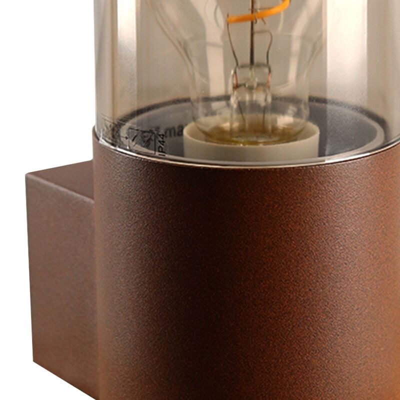 - Roestkleur wandlamp Sanel, smoke glas, IP44, cilinder