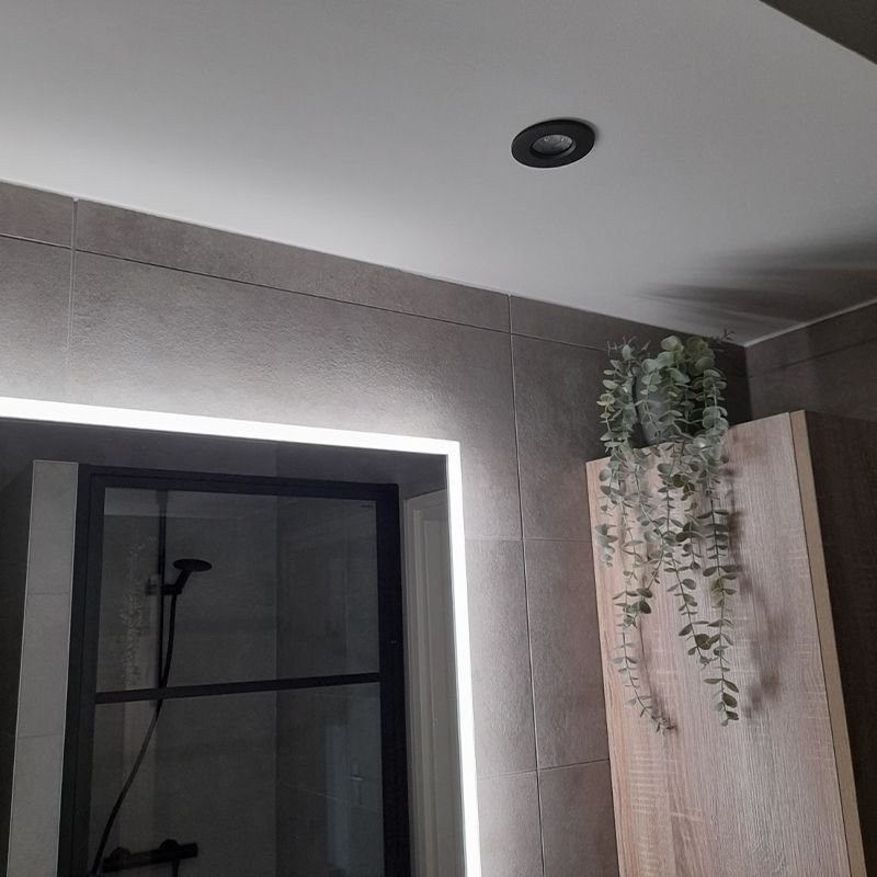 De badkamer inbouwspot heeft een sterke aluminium omranding en is eenvoudig te installeren met de 2 lipjes die boven het plafond klemmen.