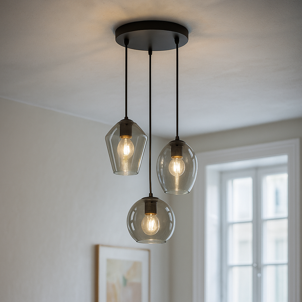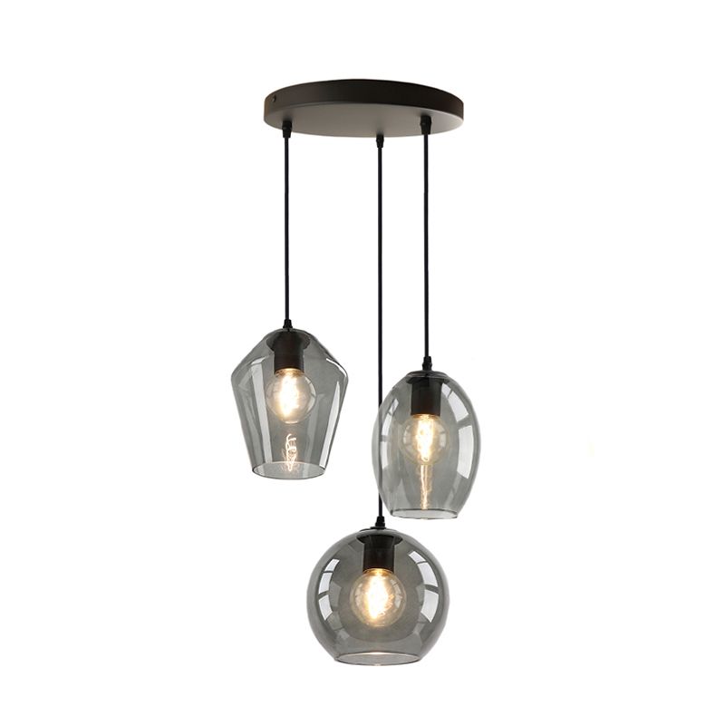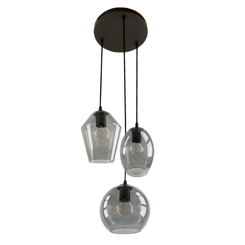 - Ronde design hanglamp Lazaro met 3 rookglas kappen
