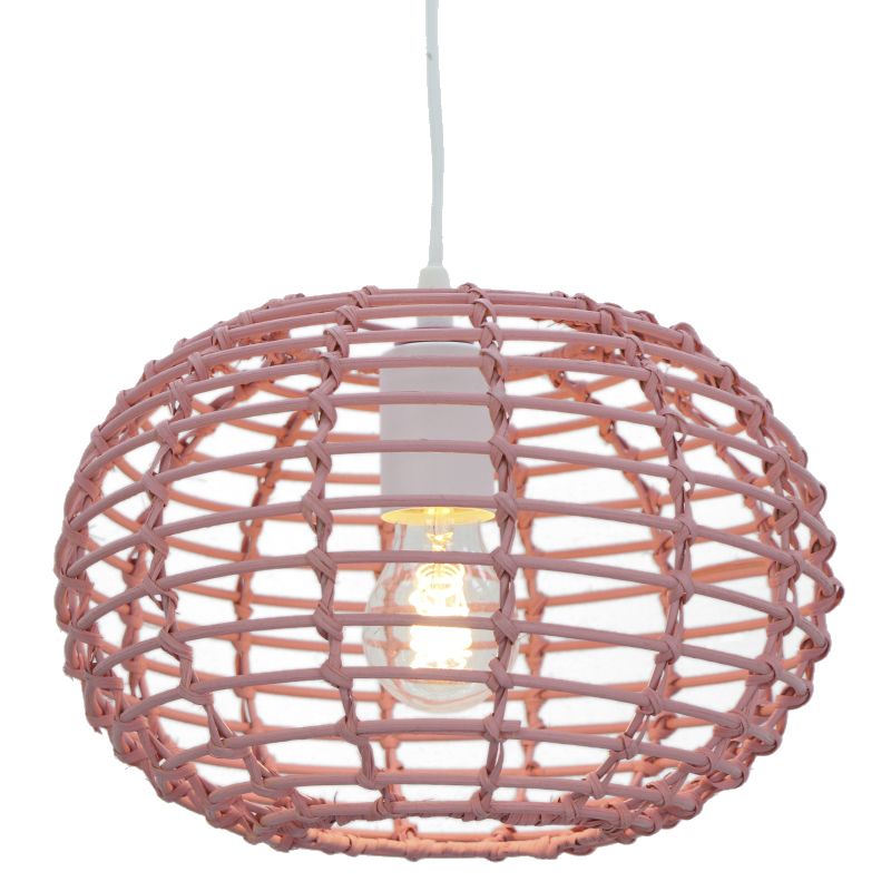 Rotan plafondlamp roze, Roza- D: 30 cm, H: 23 cm