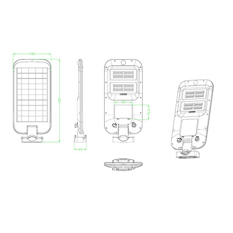 De straatverlichting heeft de volgende eigenschappen:• 43,2 cm lang, 19,8 cm breed en 6,3 cm hoog
