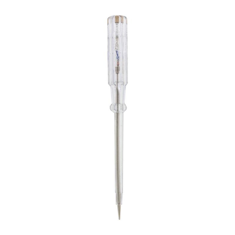 Wil je controleren of er stroom op een kabel staat? Dat kan gemakkelijk met onze spanningzoeker. Wanneer de spanningszoeker elektrische weerstand voelt, licht het lampje op en weet je dat er spanning op staat. Je controleert de elektrische spanning door de punt van de spanningszoeker tegen de kabel te houden, terwijl je jouw vinger tegen het uiteinde van de spanningszoeker houdt.