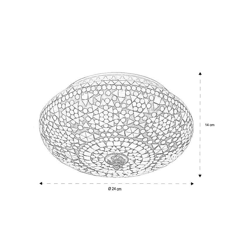 De veelkleurige oosterse plafonnière Mimoun is gemaakt van mozaïek. De veelkleurige plafonnière wordt geleverd exclusief geschikte lichtbronnen met E14 fitting. In het armatuur moeten 2 E14 fitting LED lichtbronnen met een maximaal vermogen van 40 watt per lampje.