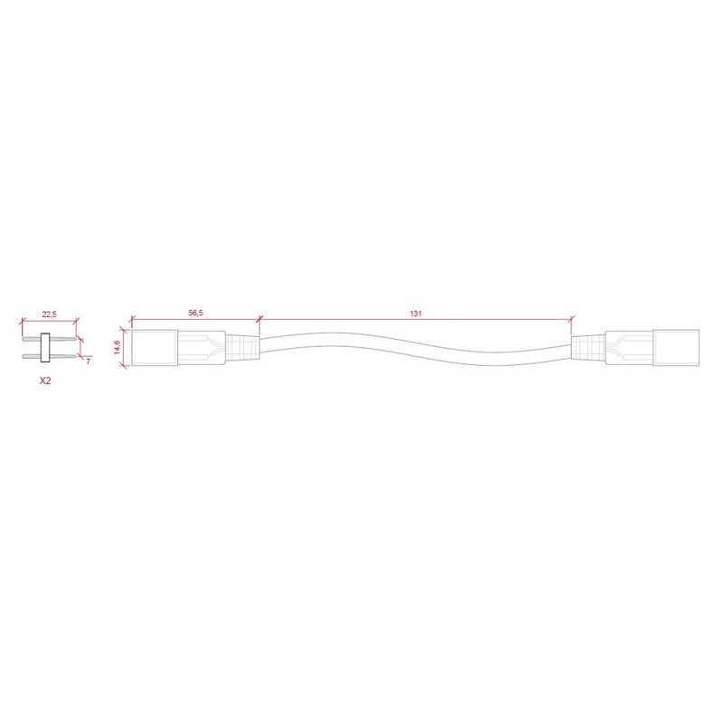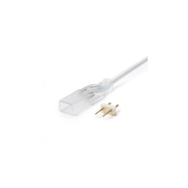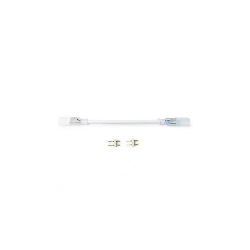 Verlengkabel om 2 stuks van de 220 Volt LED strip aan elkaar te koppelen. Het verlengkabel wordt compleet geleverd inclusief de aansluitpinnetjes. Het kabeltje tussen de connectors is 13 cm lang. Wanneer je een langer stuk wilt verlengen kan je de kabel ook kapot knippen en een extra kabel tussen de 2 aansluitpunten zetten.