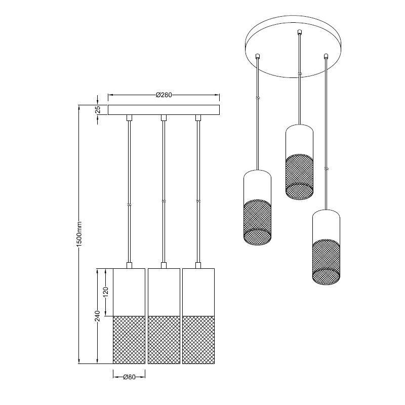 209,-Op voorraad Gaas hanglamp Cristel 3L, zwart, modern- B: 80 cm, H: 150 cm