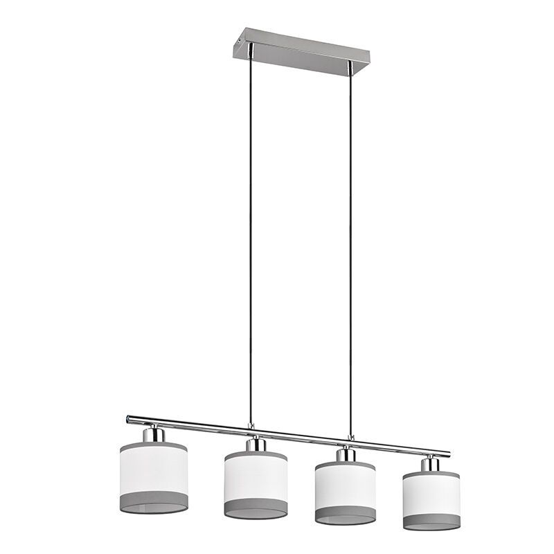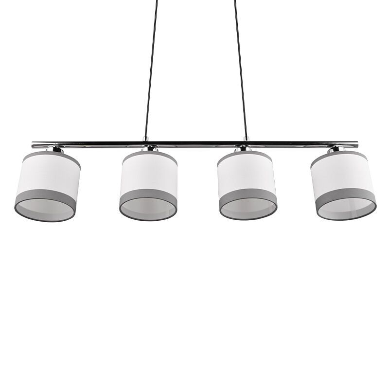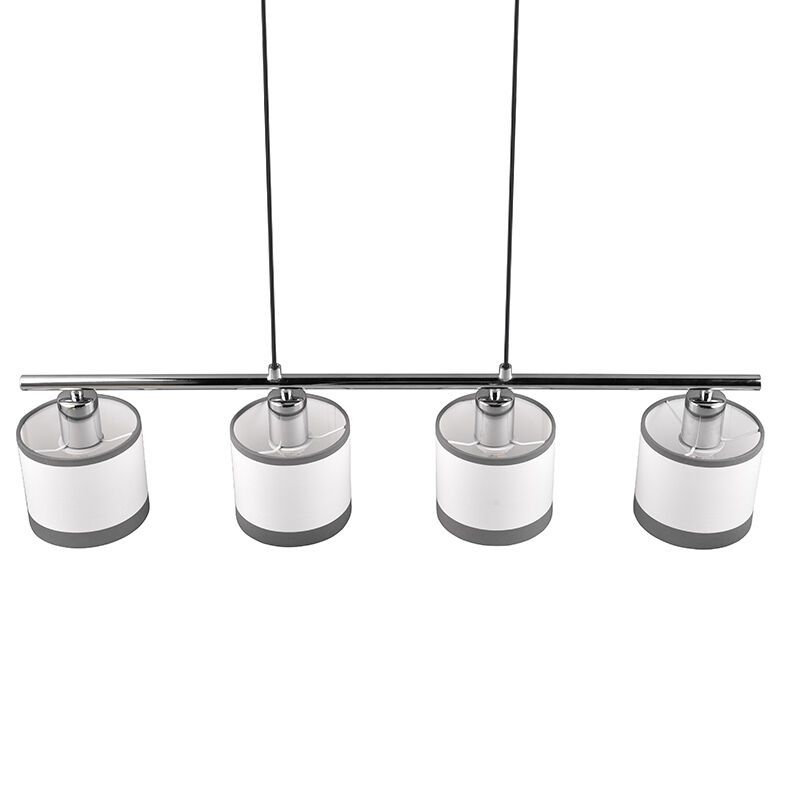 Product informatie Maximale wattage 10 Aansluitspanning 220-240V Aantal lampjes 4 Type fitting E14 Product informatie Incl. lampje Nee Breedte in cm 75 Diameter in cm 12 Hoogte in cm 150 Lengte in cm 12 Dimbaar Ja (niet meegeleverd) Garantie 2 jaar IP waarde IP20 (stofdicht) Kleur Chroom, Wit Materiaal Metaal, Stof Stijl Modern Artikelnummer Q51299 - Home