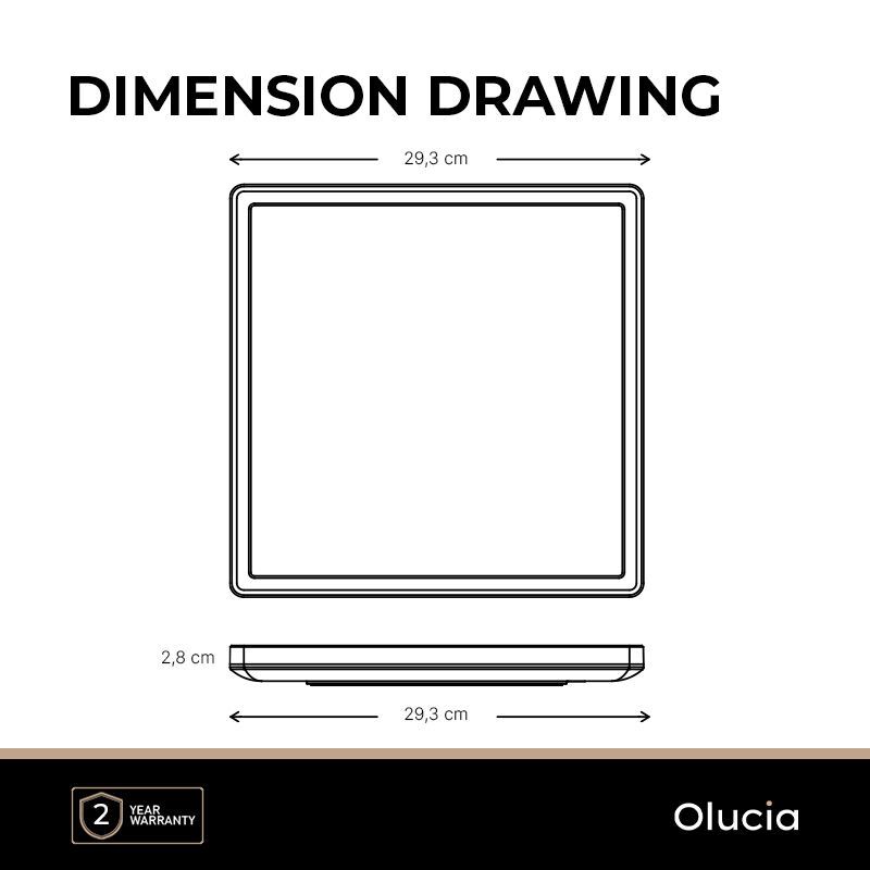 • 29,3 cm lang, 29,3 cm breed en 2,8 cm hoog