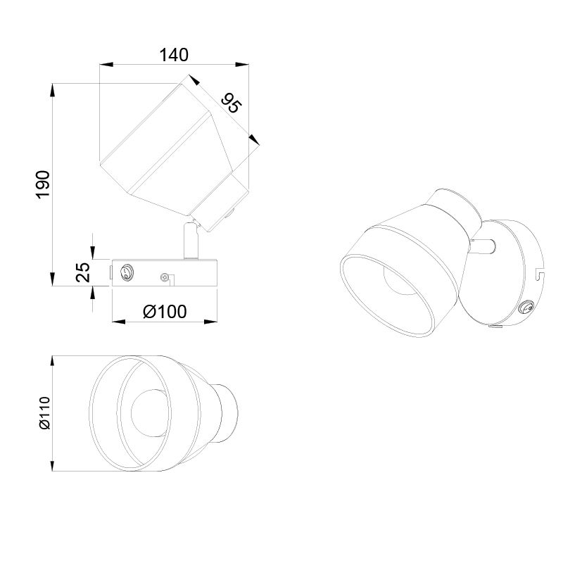 21,994-8 werkdagen Zwarte wandspot modern, Toos- B: 12 cm, H: 17,5 cm