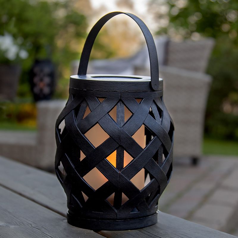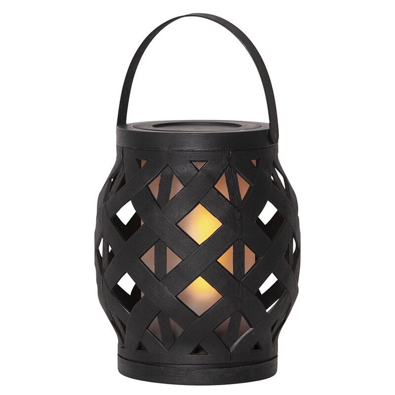 Zwarte kunststof tafellamp Alkan met vlameffect, large, op batterij- D: 15 cm, H: 23 cm