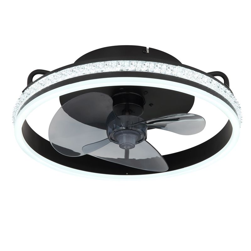 Zwarte design plafondventilator metaal, Lejla, 29W, warm tot koud wit verstelbare LED, met afstandsbediening