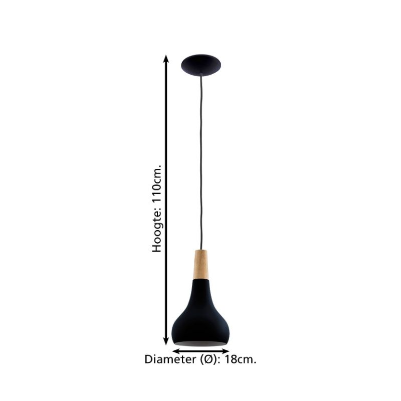 Special Price 129,- Adviesprijs: Regular Price 139,-3-6 werkdagen Houten hanglamp zwart, Wilko- D: 26 cm, H: 110 cm