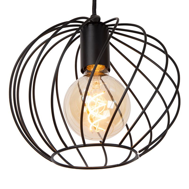 99,993-6 werkdagen Zwarte hanglamp Malunga, Bol- D: 25 cm, H: 150 cm