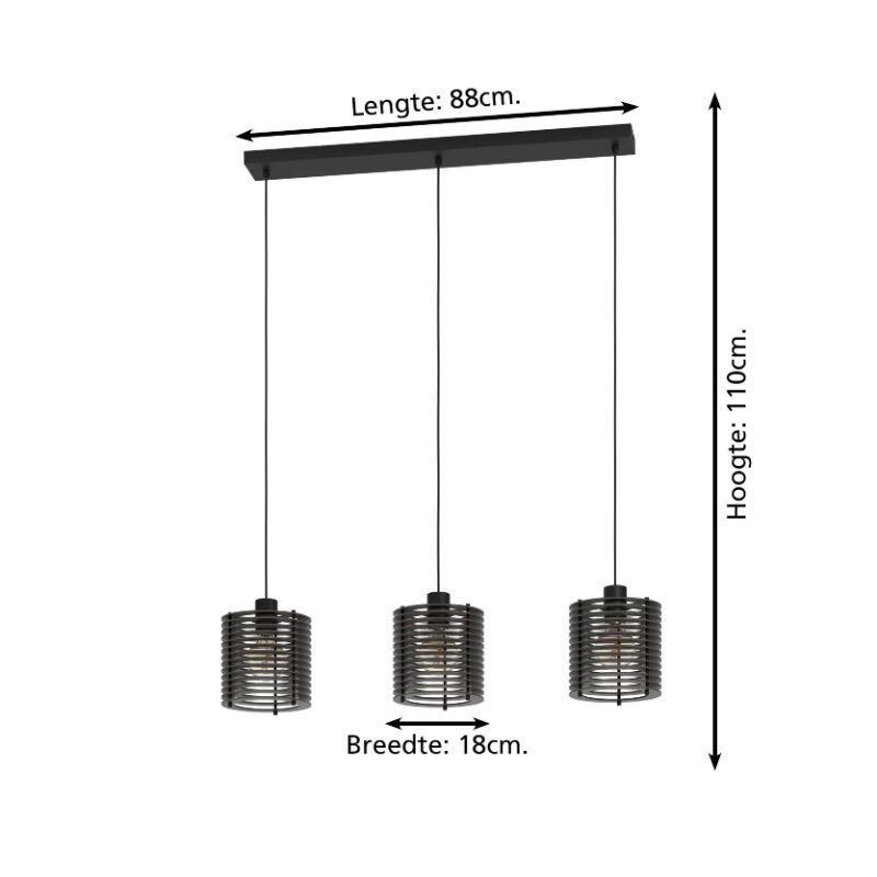 De zwarte industriële hanglamp Randy is gemaakt van hout. De zwarte hanglamp wordt geleverd exclusief geschikte lichtbronnen met E27 fitting. In het armatuur moeten 3 E27 fitting LED lichtbronnen met een maximaal vermogen van 40 watt per lampje.