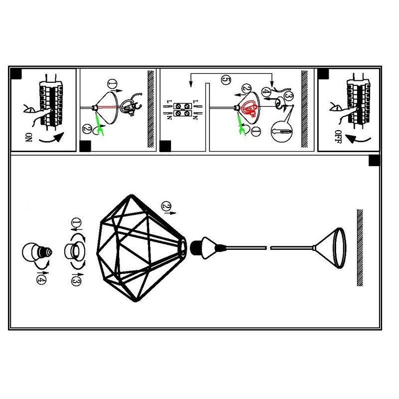 Je kan het snoer eenvoudig inkorten door het snoer door het plafondkapje te trekken. Bereken hiervoor eerst op welke hoogte je de hanglamp wil laten hangen.