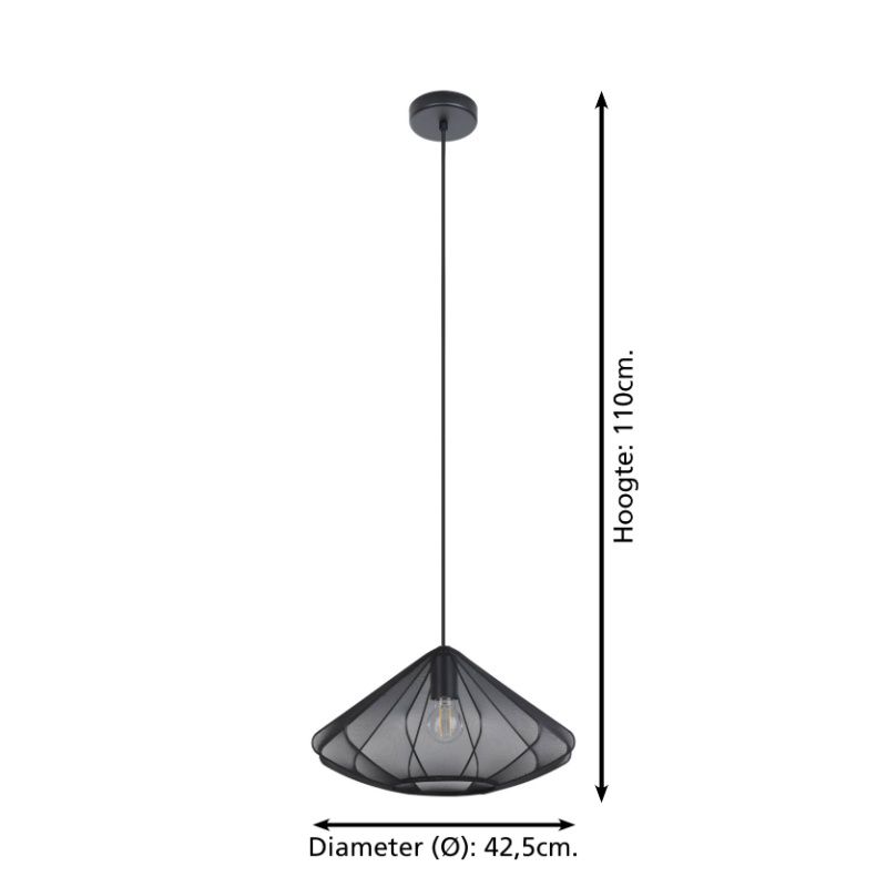 Special Price 79,99 Adviesprijs: Regular Price 89,993-6 werkdagen Zwarte industriële hanglamp metaal, Kitana- D: 28 cm, H: 110 cm