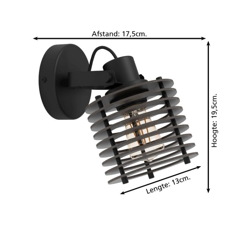 Deze zwarte industriële wandspot hout, Randy, heeft de volgende eigenschappen: