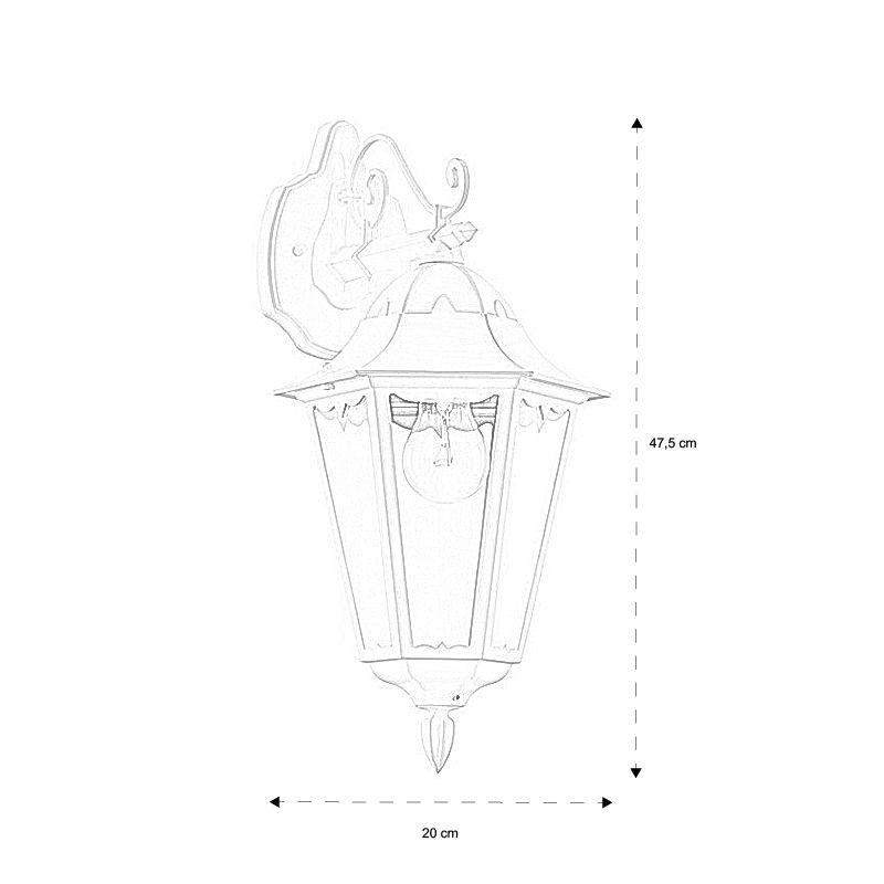 Product informatie Maximale wattage 60 Aansluitspanning 220-240V Aantal lampjes 1 Type fitting E27 Product informatie Incl. lampje Nee Diepte in cm 28.5 Gewicht in kg 1.8 Hoogte in cm 47.5 Lengte in cm 20 Dimbaar Ja (niet meegeleverd) Garantie 2 jaar IP waarde IP44 (stof- en waterbestendig) Kleur Zilver, Zwart Materiaal Aluminium, Glas Met schakelaar Nee Stijl Klassiek Artikelnummer Q16037 - Home