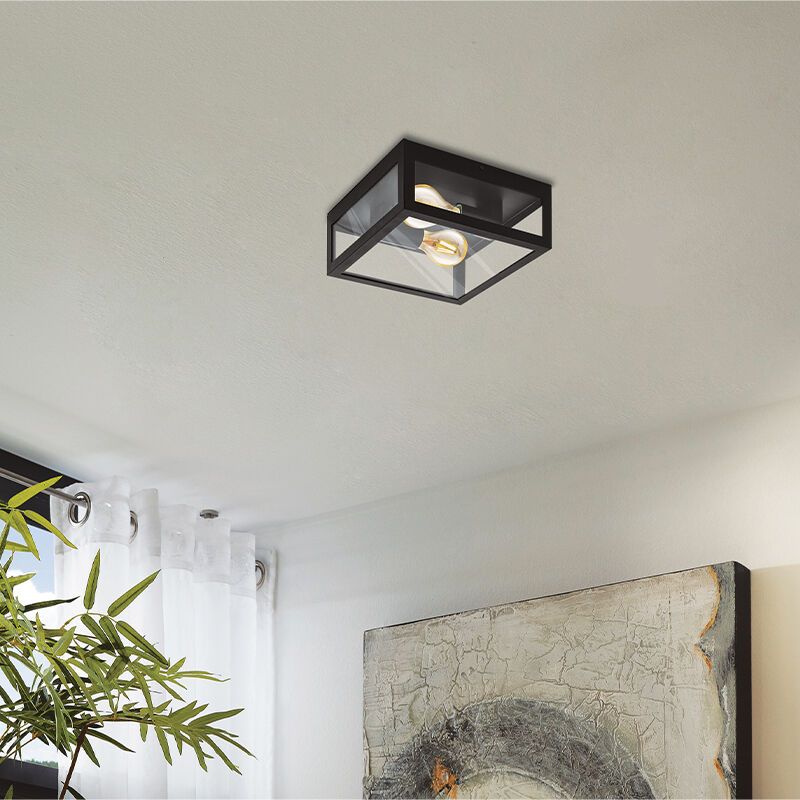 De zwarte moderne badkamer plafondlamp Amadou is gemaakt van glas. De zwarte badkamer plafondlamp wordt geleverd exclusief geschikte lichtbronnen met E27 fitting. In het armatuur moeten 2 E27 fitting LED lichtbronnen met een maximaal vermogen van 28 watt per lampje.