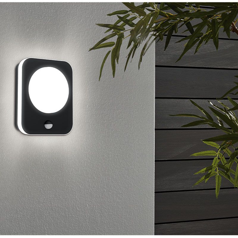 Deze lamp is uitgevoerd met een bewegingssensor. Een buitenlamp met sensor gaat automatisch aan als er beweging wordt gesignaleerd binnen ingestelde straal. Na de ingestelde tijd gaat de lamp vanzelf uit. Daarbij werkt de lamp enkel als het donker is, dankzij de schemersensor die erin zit.