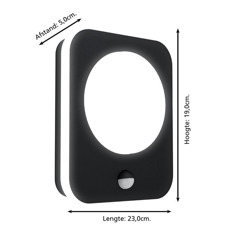 De zwarte buitenlamp met bewegingssensor Luut heeft de volgende eigenschappen: