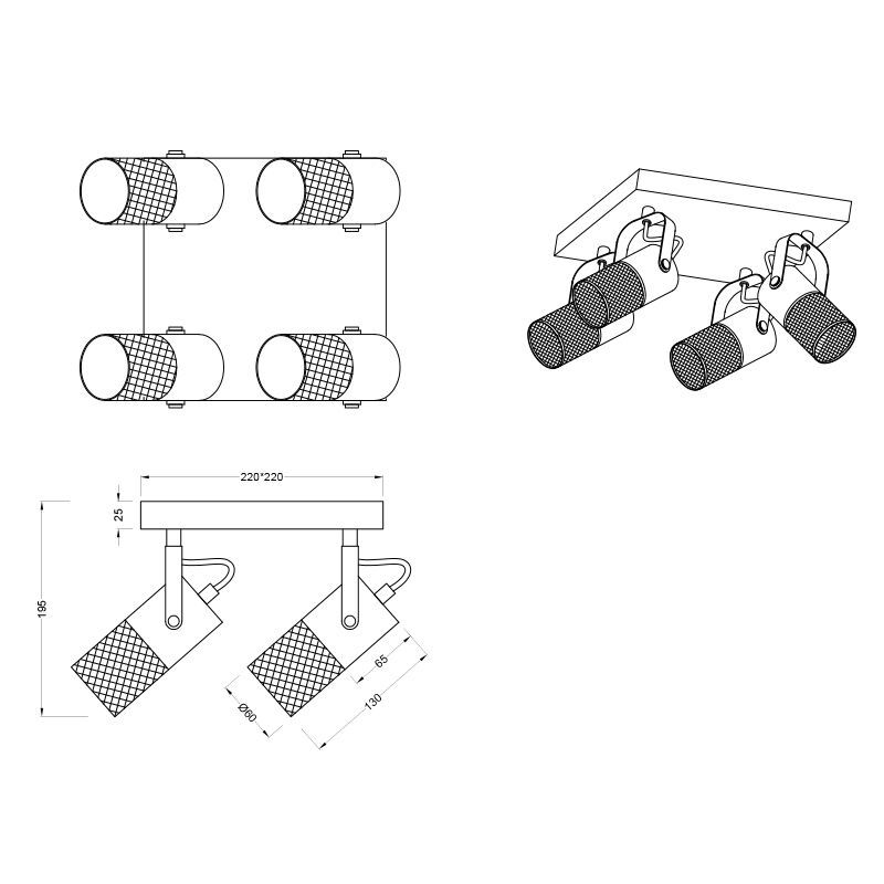 Product informatie Maximale wattage 15 Aansluitspanning 220-240V Aantal lampjes 4 Type fitting E14 Product informatie Incl. lampje Nee Breedte in cm 22 Gewicht in kg 1.36 Hoogte in cm 20 Lengte in cm 22 Dimbaar Ja (niet meegeleverd) Garantie 2 jaar IP waarde IP20 (stofdicht) Kleur Wit, Zwart Materiaal Metaal Stijl Vintage Artikelnummer Q52318 - Home