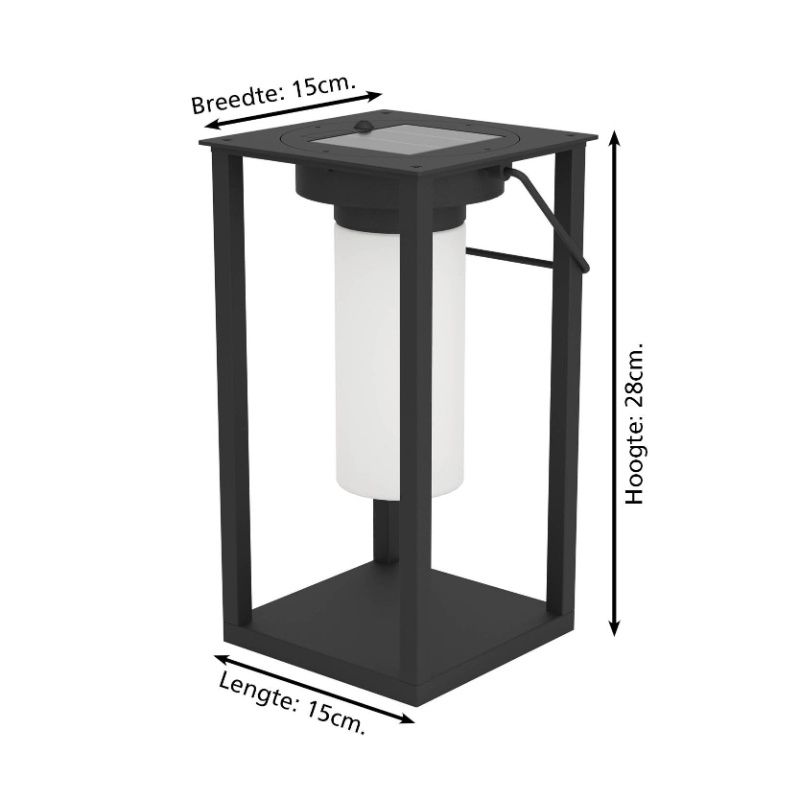 - Zwarte solar buiten tafellamp, Hillebrand, 3,3W, 4000K LED, IP54, met schakelaar