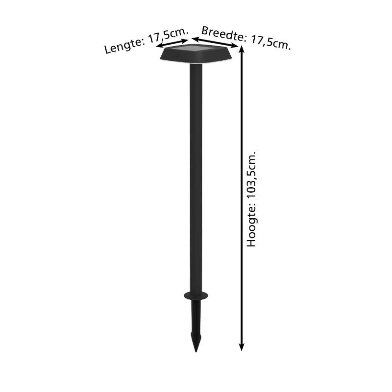 De zwarte solar prikspots Ingemar is gemaakt van kunststof. De zwarte solar prikspots is uitgevoerd met 8,5 watt geïntegreerd LED verlichting. De geïntegreerde LED verlichting heeft de lichtkleur 3000K (warm wit). Dit is warm wit licht dat een gezellige en warme sfeer creëert.