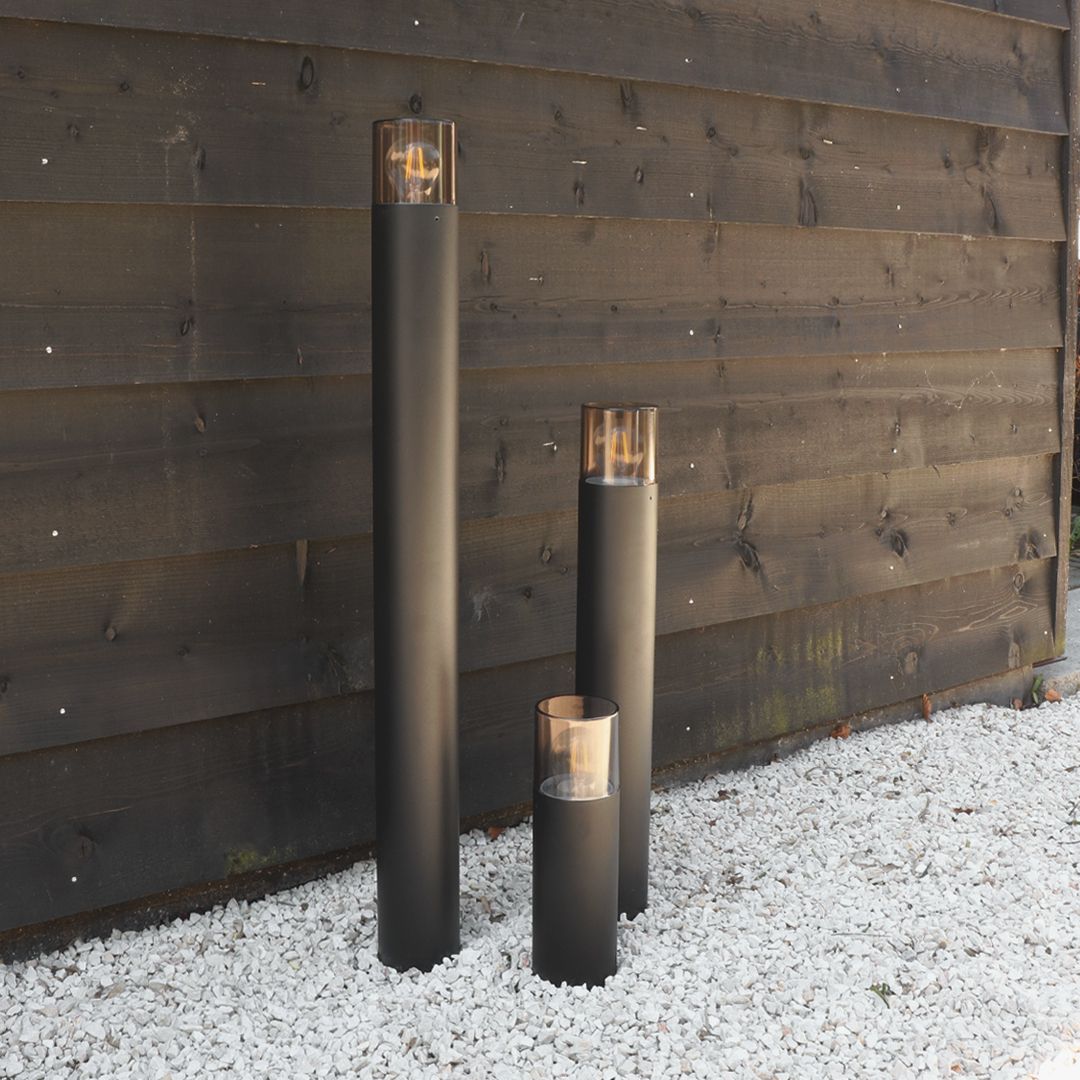 Special Price 49,99 Adviesprijs: Regular Price 79,99Op voorraad Zwarte staande buitenlamp Sanel, Smoke glas, 90cm- D: 14 cm, H: 90 cm