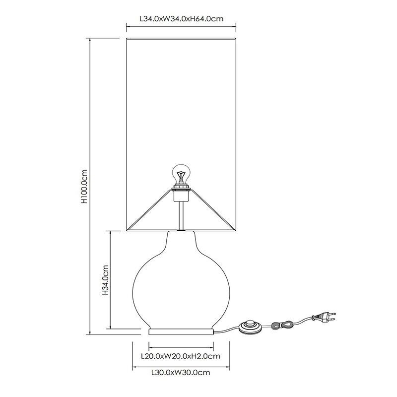 Product informatie Maximale wattage 60 Aansluitspanning 220-240V Aantal lampjes 1 Type fitting E27 Product informatie Incl. lampje Nee Breedte in cm 34 Breedte voet-/montageplaat in cm 30 Diameter in cm 34 Diameter voet-/montageplaat 30 Gewicht in kg 3.37 Hoogte in cm 100 Hoogte voet-/montageplaat 34 Kabellengte 180 Lengte in cm 34 Lengte voet-/montageplaat 30 Dimbaar Ja (niet meegeleverd) Garantie 2 jaar IP waarde IP20 (stofdicht) Kleur Zwart Materiaal Stof, Glas Met schakelaar Ja Met snoer en stekker Ja Stijl Retro Type schakelaar Aan/uit schakelaar op het snoer Artikelnummer Q51178 - Home