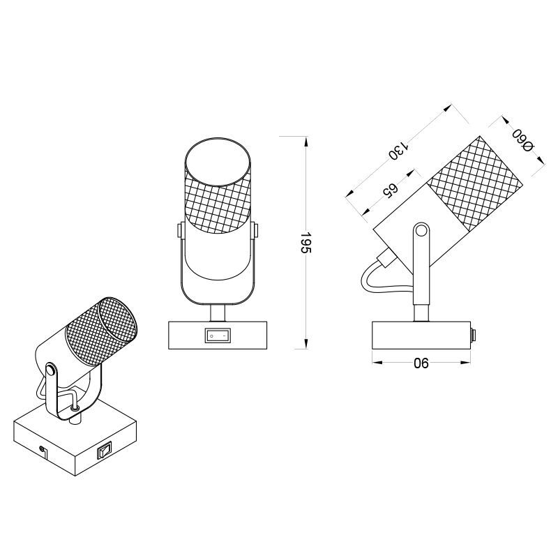 - Zwarte wandspot vintage, Marjet, met schakelaar