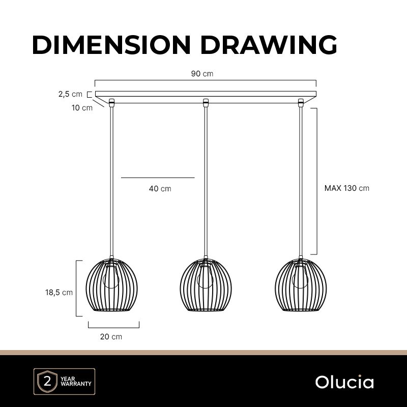 Zwarte Lieve hanglamp met 3 ronde, 30cm, kappen- B: 90 cm, H: 130 cm